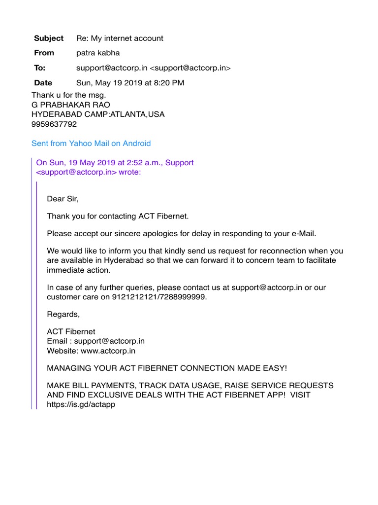 Sahaya Digo On Twitter Service Request Number Is Act Internet Customer Care twitter.com