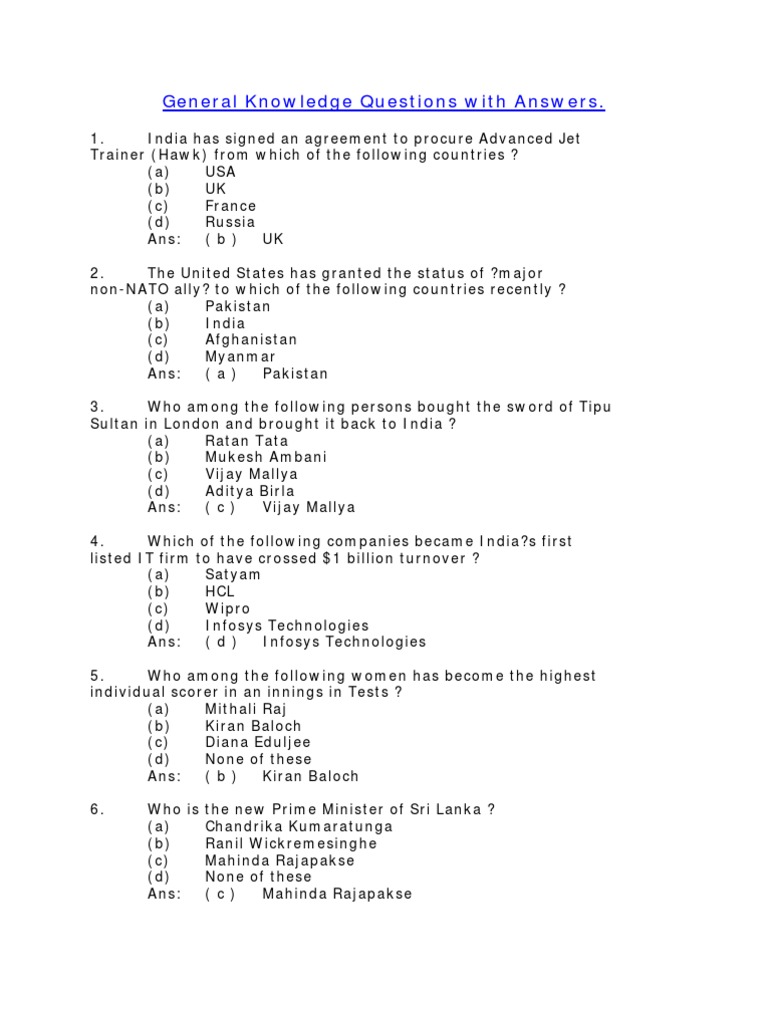 100 General Knowledge Quiz Questions And Answers Test Your Common Knowledge General Knowledge Quiz