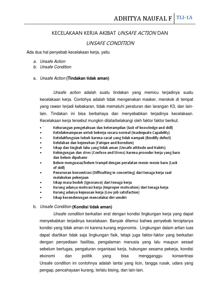 Kecelakaan Kerja Akibat Unsafe Action Dan Contoh Unsafe Action Di Tempat Kerja id.scribd.com