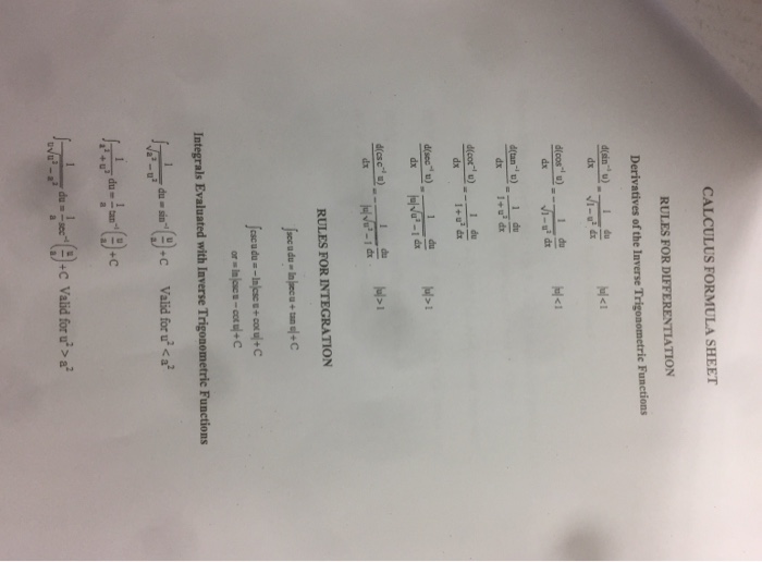 Calculus Formula Sheet Rules For Differentiation D Chegg Com Differentiation And Integration Formulas Of Trigonometric Functions