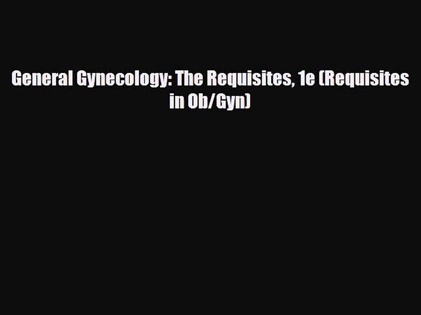 Geriatrics 3 Gynecology Orthopaedics Anesthesiology Surgery General Gynecology The Requisites