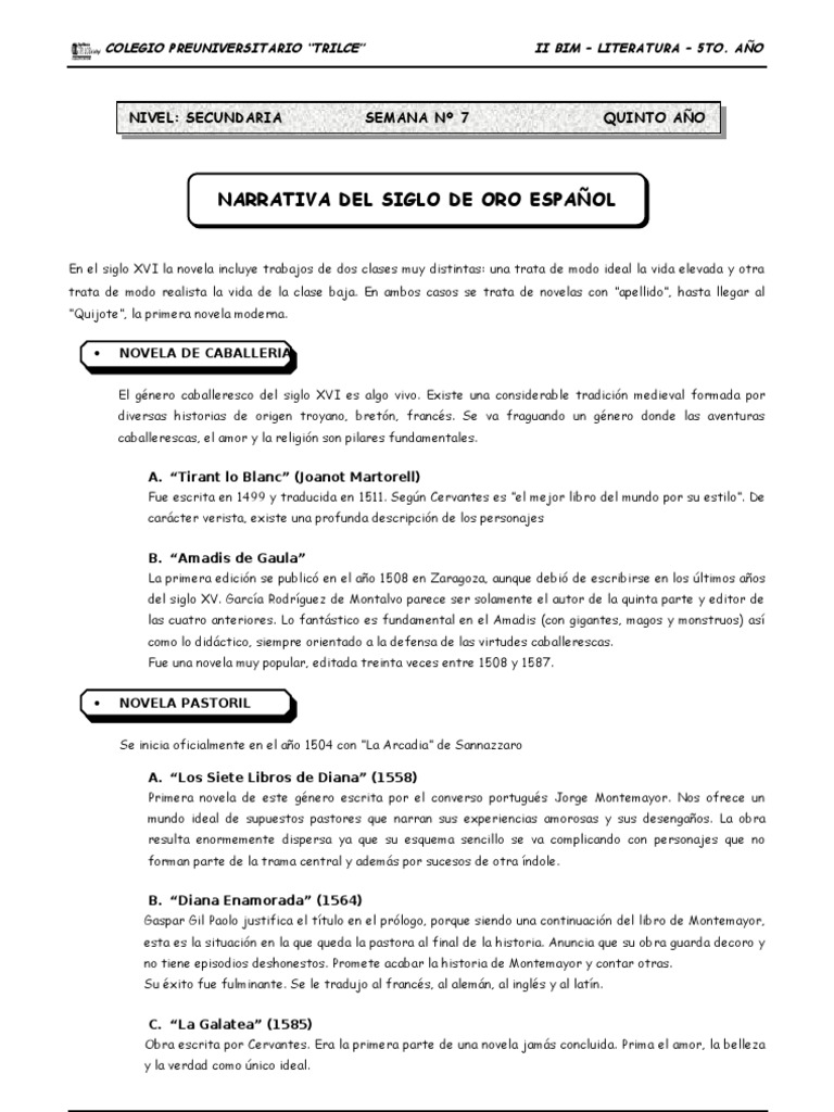 5to Ano Lit Guia 7 Narrativa Del Siglo De Oro Espanol Don Los Siete Libros De La Diana Narrativa es.scribd.com