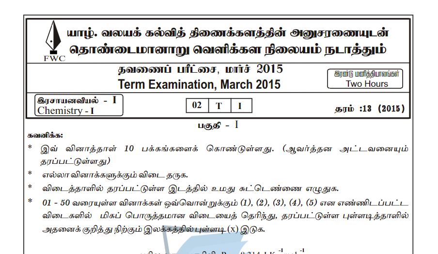Chemistry Field Work Centre Term Exam March 2015 G C E A L Past Papers Grade 10 English Medium 1st Term tamil.agaram.lk