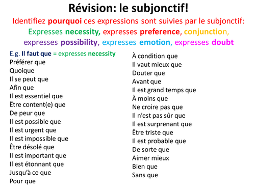French Teaching Resources The Subjunctive Introduction Subjunctive French Example Sentences