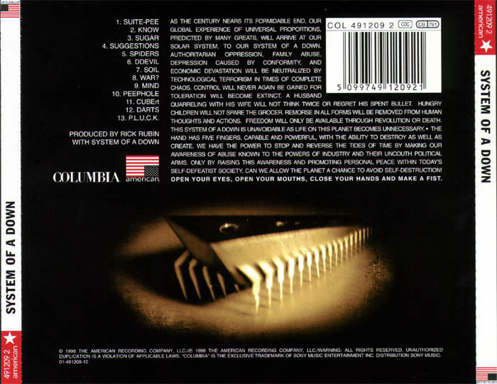 10 Best System Of A Down Songs System Of A Down Toxicity Back Cover loudwire.com