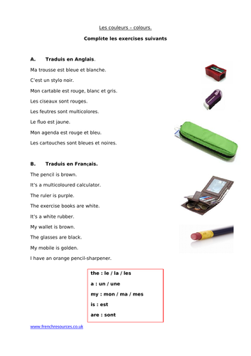 Ks3 French Dans Mon Cartable Les Couleurs Teaching Resources Un Cartable In French www.tes.com